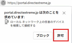 | 2 | 「ローカルネットワーク上のデバイスを検索して接続する」という許可を求めるメッセージが表示されますので「許可する」を押下してください。