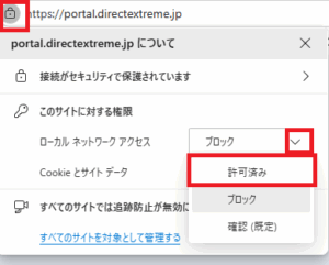 Chrome 142/Edge 143以降では、仕様変更によりローカルネットワークへのアクセス許可設定が必要になります。